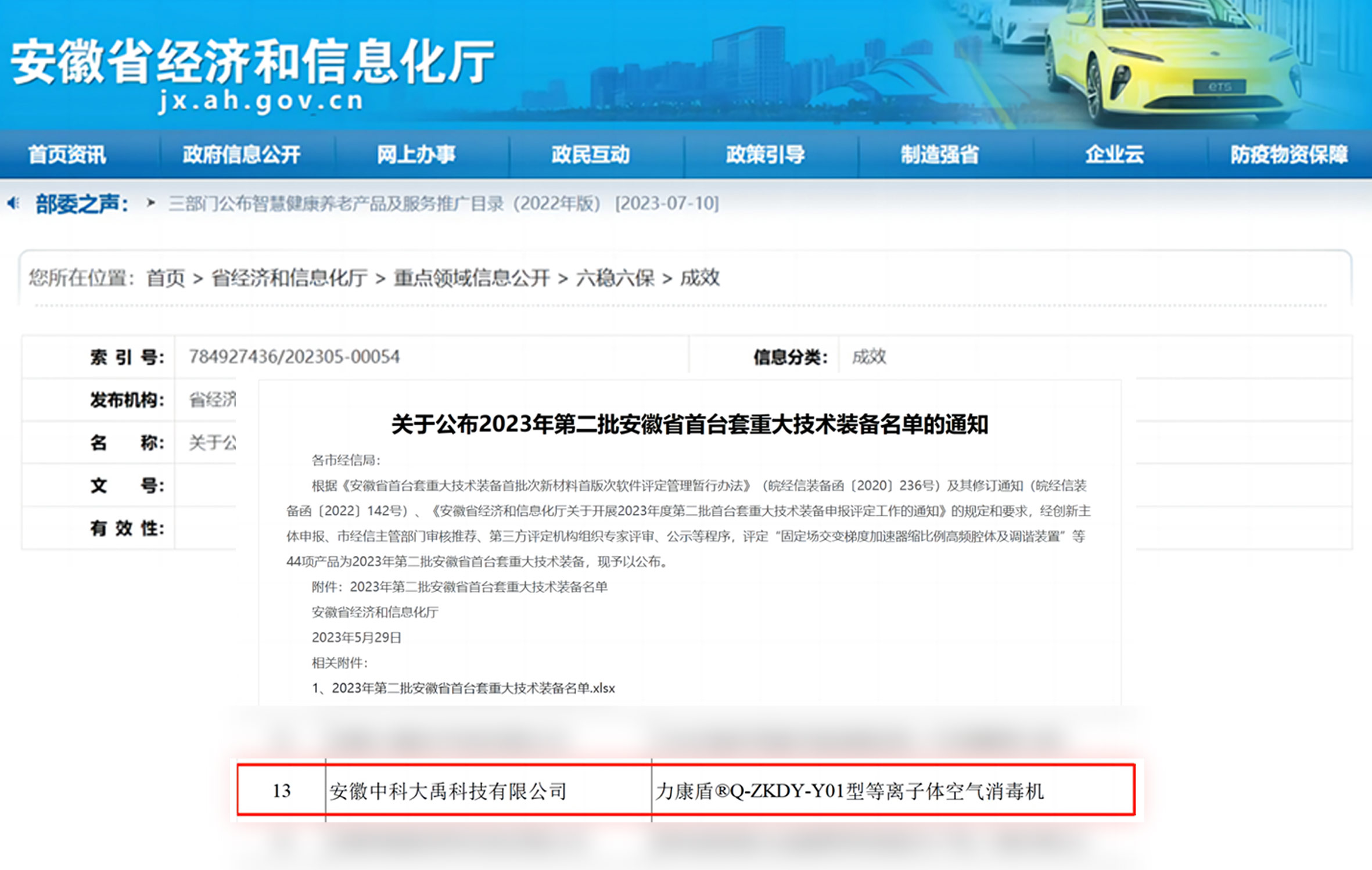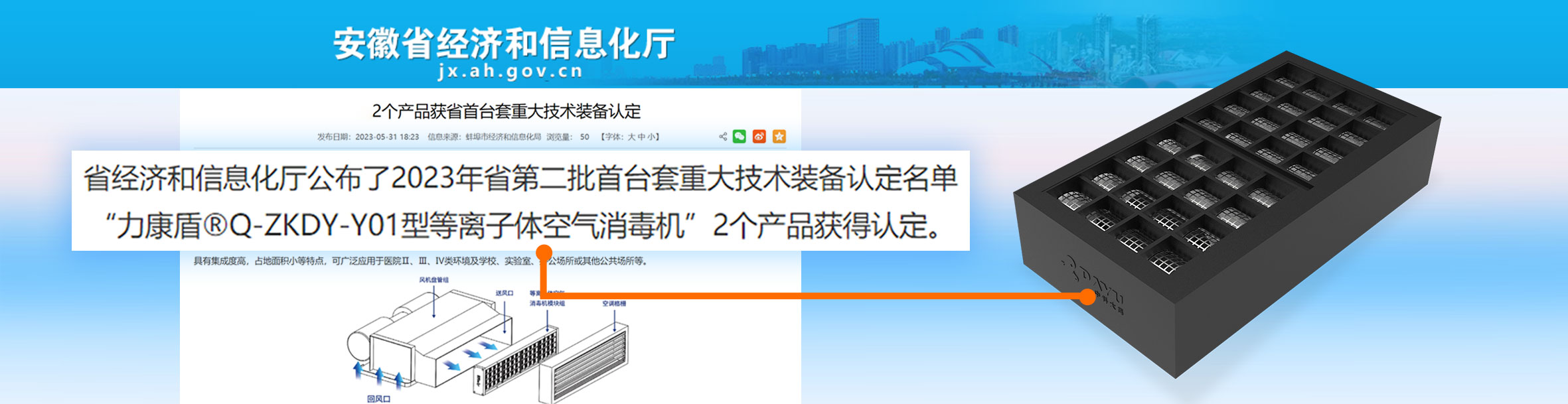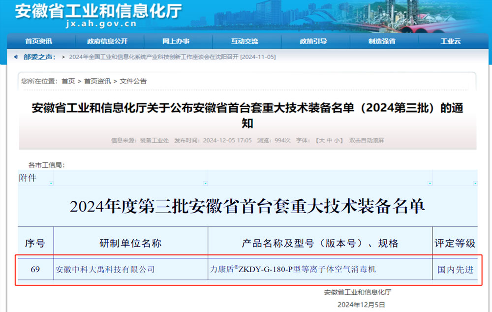 • 力康盾?ZKDY-G-180-P型等離子體空氣消毒機(jī)入選2024年度第三批安徽省首臺(tái)套重大技術(shù)裝備,評(píng)定等級(jí):國內(nèi)先進(jìn)