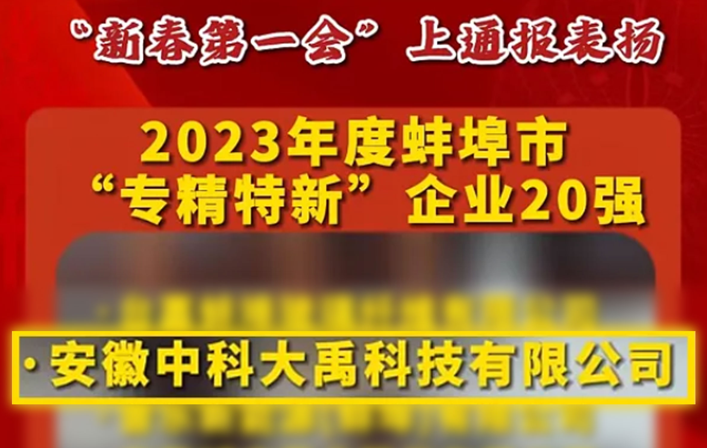 • 中科大禹榮登2023年度蚌埠市“專精特新”企業(yè)20強(qiáng)