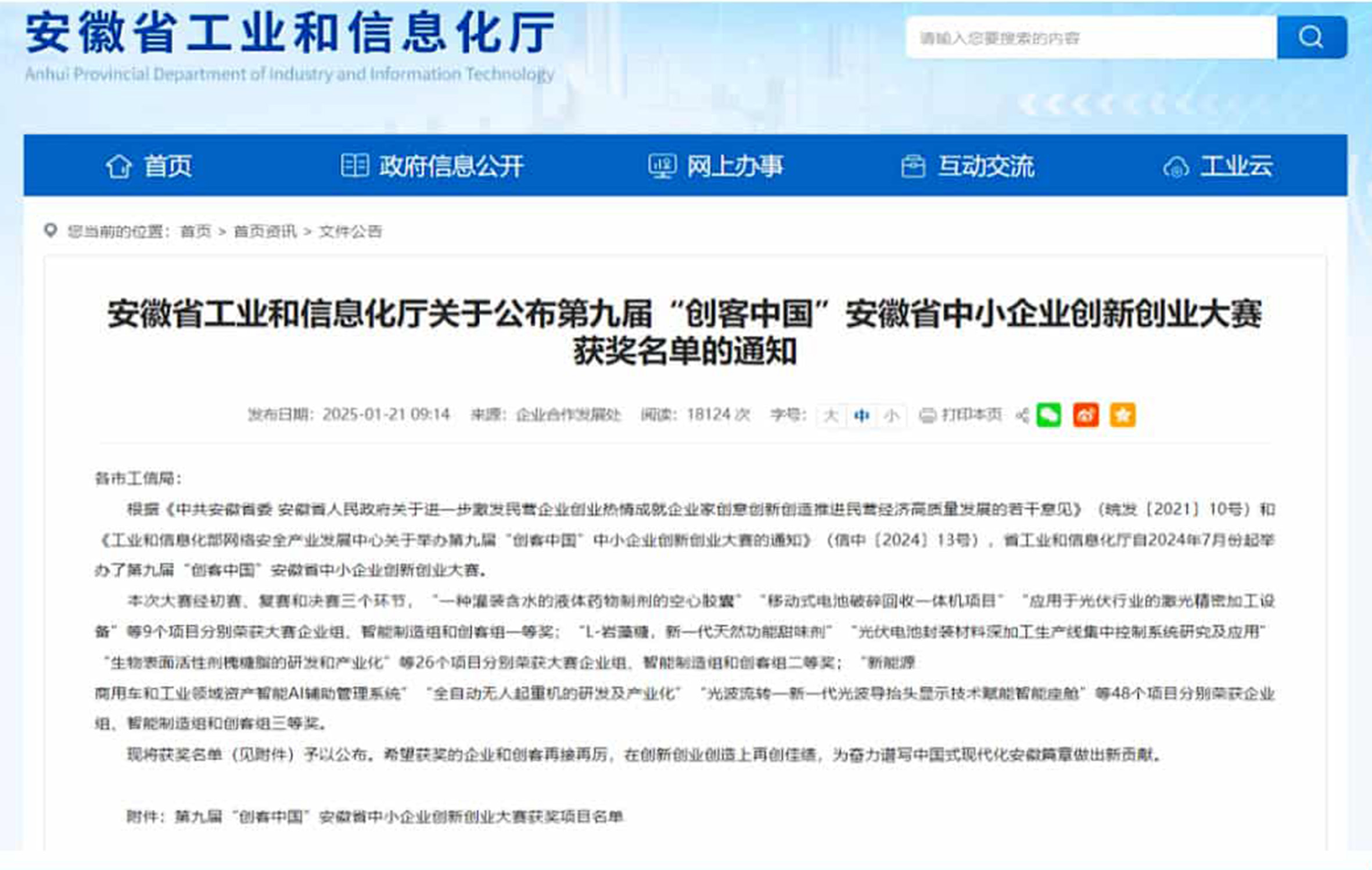 • 入選2022年度安徽省專精特新中小企業(yè) 入選2022年度安徽省創(chuàng)新型中小企業(yè)名單